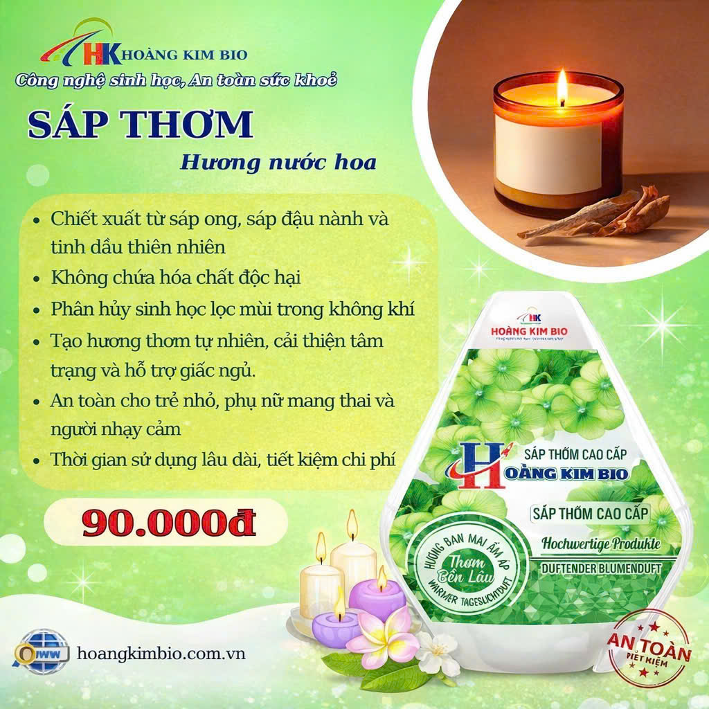 Bạn đã bao giờ cảm thấy không gian sống của mình thiếu đi một “hơi thở” mới mẻ? Mùi hôi từ nhà bếp, xe hơi hay phòng tắm khiến bạn khó chịu? Đừng để những điều nhỏ nhặt ấy làm mất đi sự thoải mái! Sáp thơm hương nước hoa Hoàng Kim Bio chính là “vũ khí bí mật” giúp bạn biến mọi góc nhà thành một thiên đường thơm mát, sang trọng và thư giãn. Hãy cùng khám phá tại sao sản phẩm này đang khiến hàng ngàn khách hàng mê mẩn và sẵn sàng đặt mua ngay hôm nay!